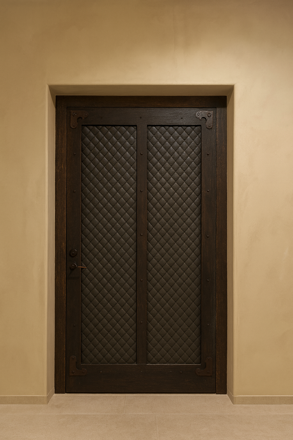 The private dining room serves as a jewel-box homage to the Ishtar Gate. Lapis-colored walls surround the space in deep, atmospheric tones, while plush carpet underfoot adds richness and acoustic warmth. Brass details and walnut accents provide structure and glow, layering tradition into a refined, contemporary setting. The result is a room that feels transportive—rooted in history yet executed with modern restraint.